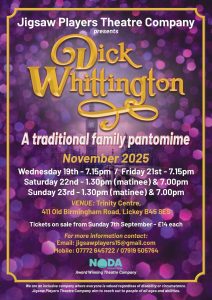 It’s that time of year again when our Methodist Superintendent Minister Rev Stephen Levett invites you to come and see him and other more talented performers in pantomime. This year the show is Dick Whittington and Steve will once more be taking on the role of The Dame. See the poster for dates and times. Steve is happy to pick up tickets for you at rehearsals or you can book them directly using the information on the poster. Tickets £14 for all. This will be the last time Steve performs in pantomime with Jigsaw Players before he heads off on retirement elsewhere in the country, so it would be great to see as many church members and friends in the audience as possible. Steve will be performing in all six shows.